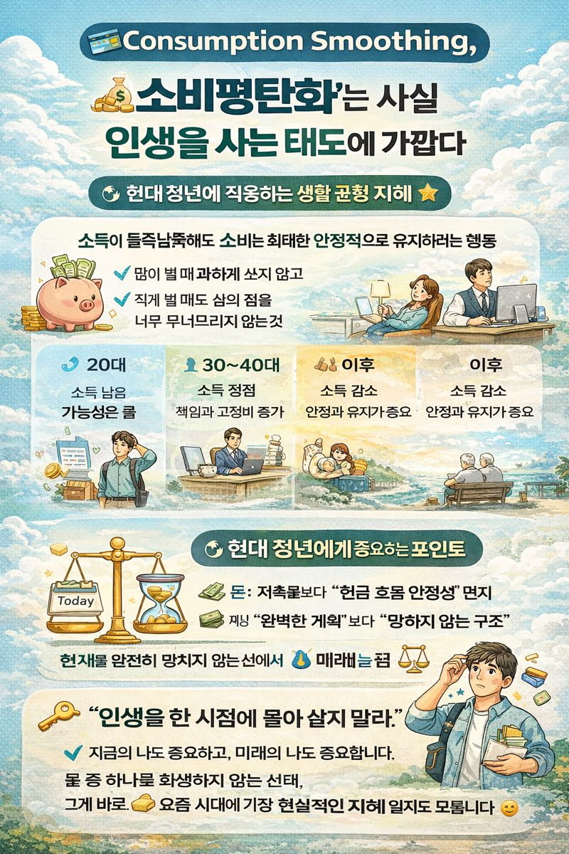 경제학에서 **Consumption smoothing(소비평탄화)**이란 개념이 있습니다.